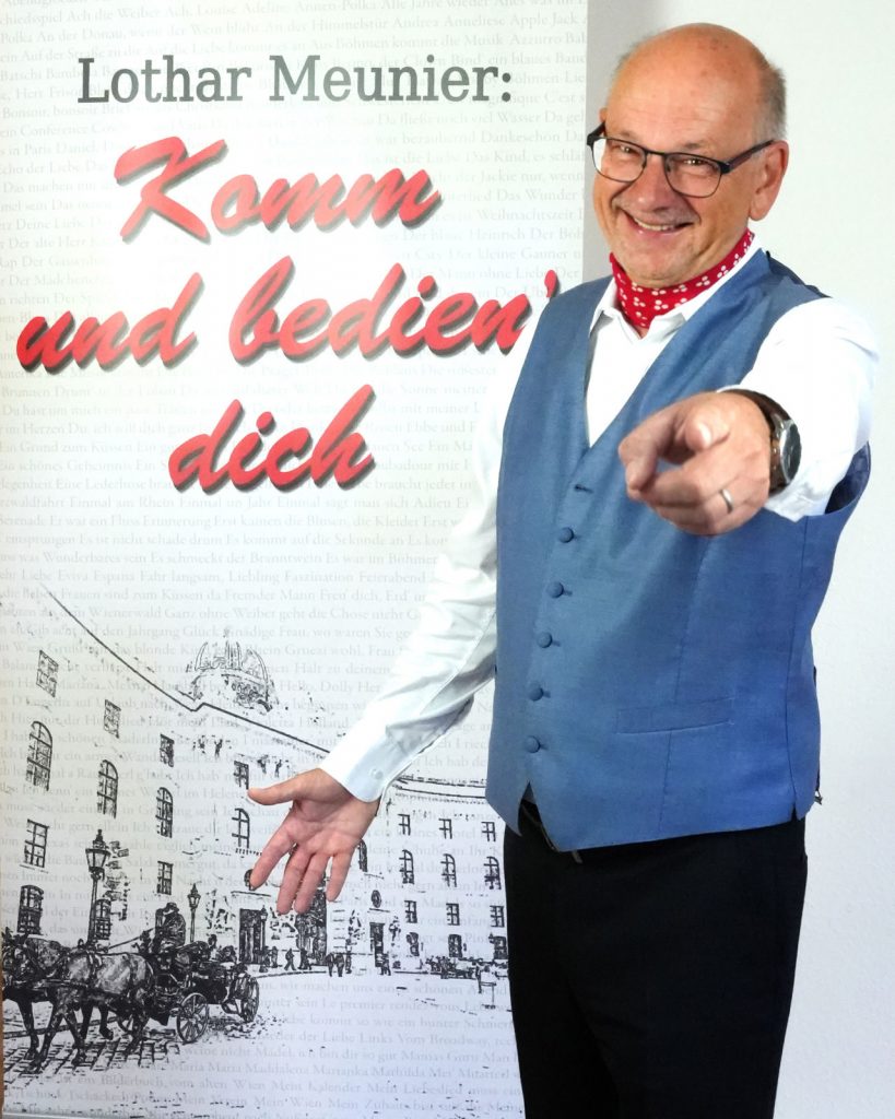 Lieder wie „Die kleine Kneipe“, oder „Ich zähle täglich meine Sorgen“ und auch die Musik aus dem Film „Im weißen Rössl“ sind Evergreens geworden. Bei seinen Auftritten hat Peter Alexander immer wieder von seiner Heimat Wien und von Böhmen erzählt.  Mit Lothar Meuniers  Programm „Komm und bedien Dich“ werden diese Erinnerungen wieder aufgefrischt und sein Publikum verlässt das Konzert mit einem Lächeln im Gesicht.